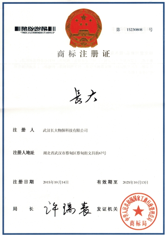 文章來源:武漢長大物探科技有限公司 發(fā)布日期:2016/4/18 瀏覽次數(shù): 次 新聞網(wǎng)訊(通訊員:陳華) 2016年4月18日,在等待一年多后,我公司申請注冊的兩個(gè)商標(biāo)順利通過國家工商行政管理總局商標(biāo)局的成功注冊認(rèn)證。這次商標(biāo)的成功注冊標(biāo)志著公司正式進(jìn)入品牌化、專業(yè)化、規(guī)范化發(fā)展之路。