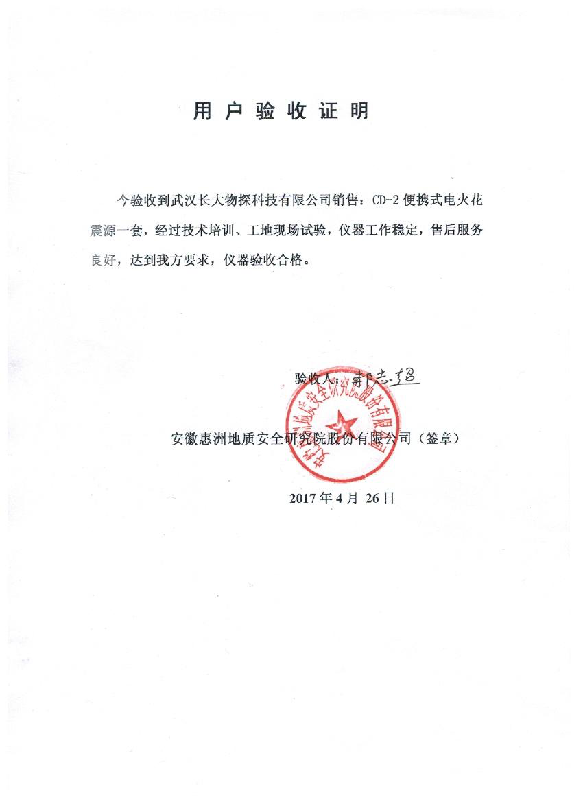 新聞網(wǎng)訊(通訊員:于東) 2017年4月26日,安徽惠洲地質(zhì)安全研究院股份有限公司購買我公司電火花震源設(shè)備,在杭州西湖項(xiàng)目工地使用效果良好,做出了較好的數(shù)據(jù),解決了實(shí)際問題,達(dá)到了雙方預(yù)期的效果。